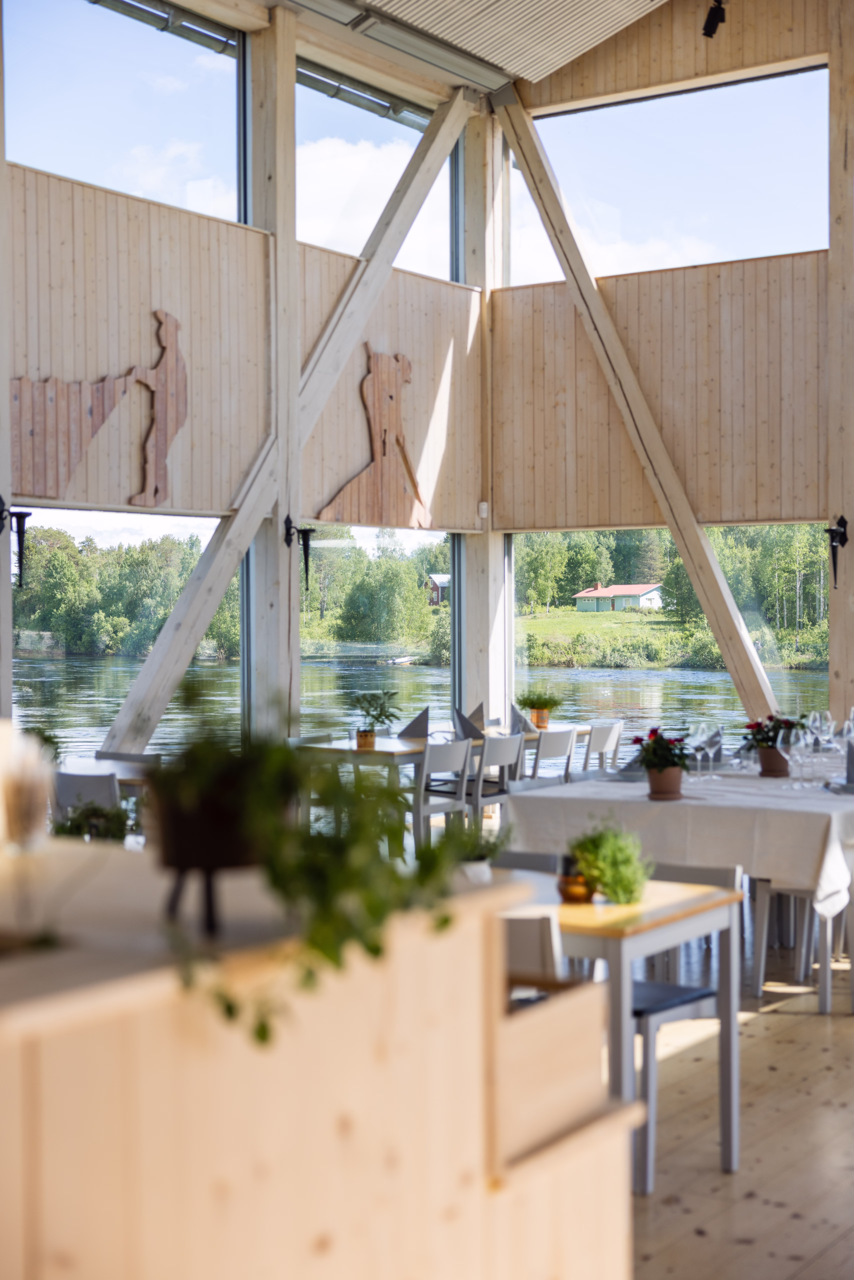Locally sourced ingredients and a world-class wine list are served with a side of panoramic views over Torne River. Kattilakoski Restaurant as a place for upscale casual dining is a popular destination among both locals and visitors. The Australian chef T az Huggins and sommelier Henrik Berg run the restaurant, with the river rapids outside sharing the restaurant's name. Kattilakoski translates to pot rapid , and the rushing water is imitating a boiling pot of water.